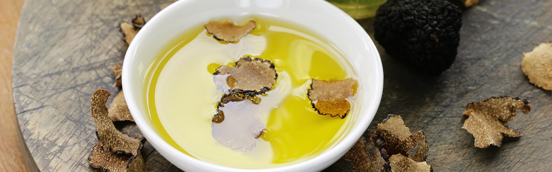Il nostro olio al tartufo bianco è a base di un raffinatissimo olio extra vergine di oliva rigorosamente toscano, arricchito con un pregiato aroma di tartufo bianco.