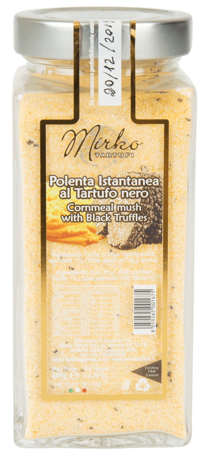 L’aggiunta di tartufo nero rende questa polenta perfetta da abbinare con salsiccia, pecorino, funghi e/o tartufo fresco!