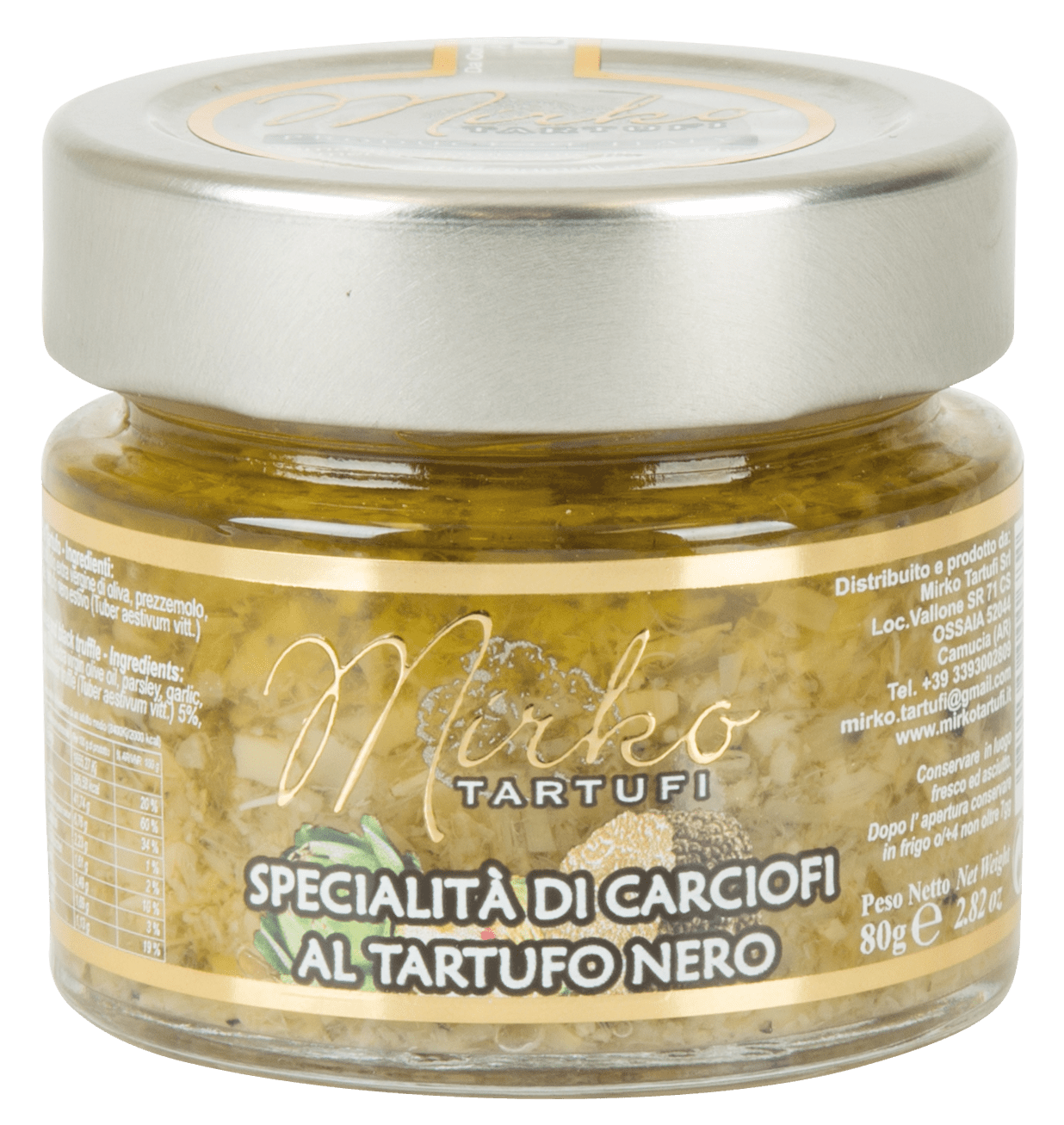 Carciofi 65%, olio extra vergine di oliva, Tartufo Nero Estivo (tuber aestivum vitt) 5%, sale, aroma, prezzemolo, pepe