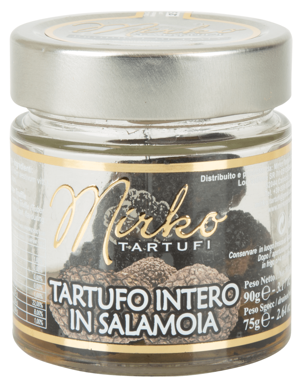 Detto anche “tartufo in salamoia “è il prodotto che più si avvicina al tartufo fresco. All’interno del vasetto di vetro viene conservato tartufo intero in un minimo quantitativo di acqua e sale, per portare a tavola il gusto del tartufo in ogni occasione!
